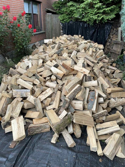 - Kwalitatief droog brandhout (2 jaar natuurlijk gedroogd) versneden op gemiddeld 50cm